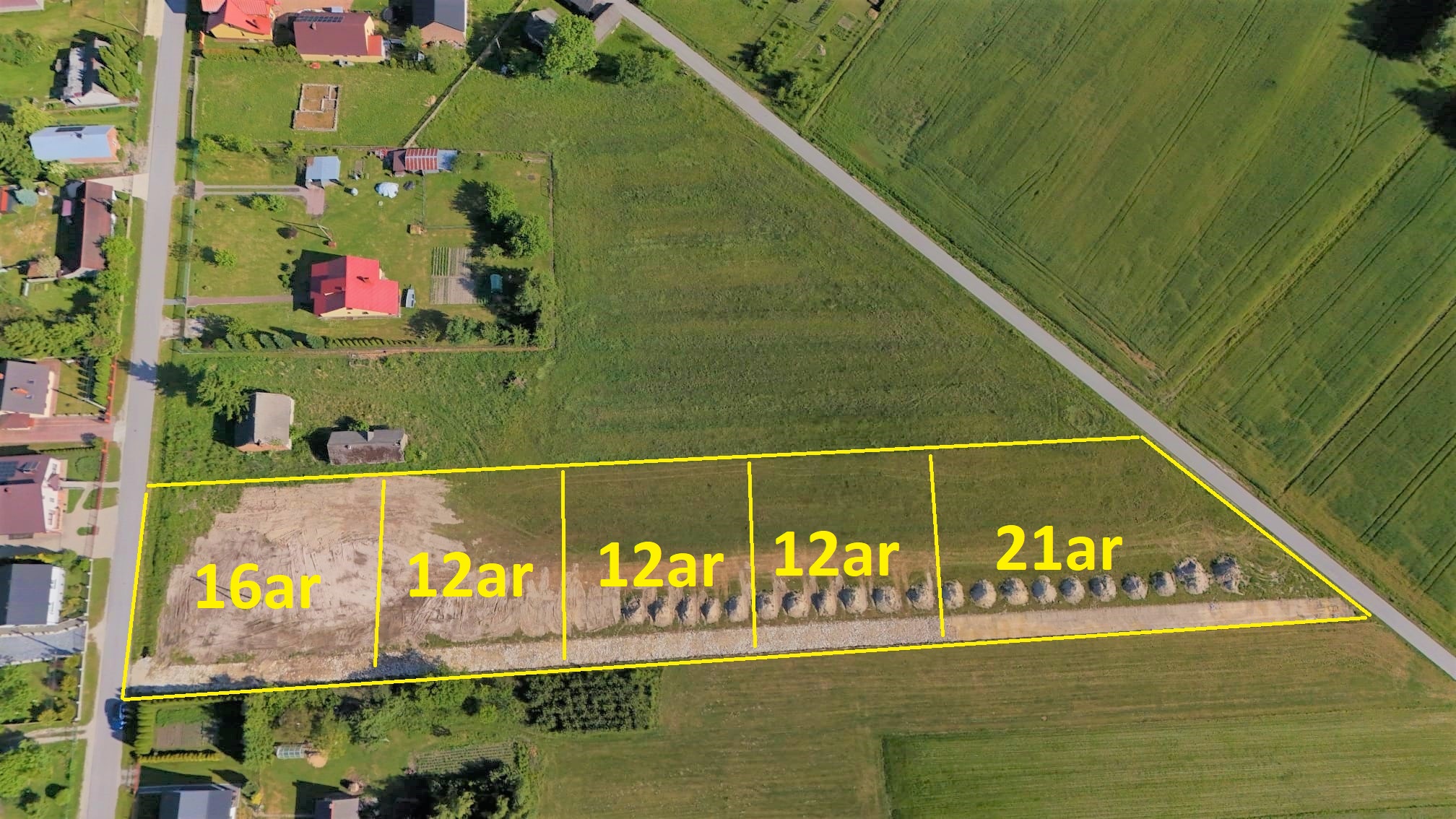 W otoczeniu nieruchomości występuje zabudowa siedliskowa, mieszkaniowa jednorodzinna i handlowo-usługowa. Działki leżą bezpośrednio przy drodze gminnej asfaltowej w której są media, jest jeszcze drugi dojazd z drugiego końca działek również drogą asfaltową. Dodatkowo przez całą długość działek wydzieliłem drogę wewnętrzną szerokości 5 m, która będzie należeć do właściciela działek, jest w trakcie utwardzania. Na pierwszej działce jest prąd.