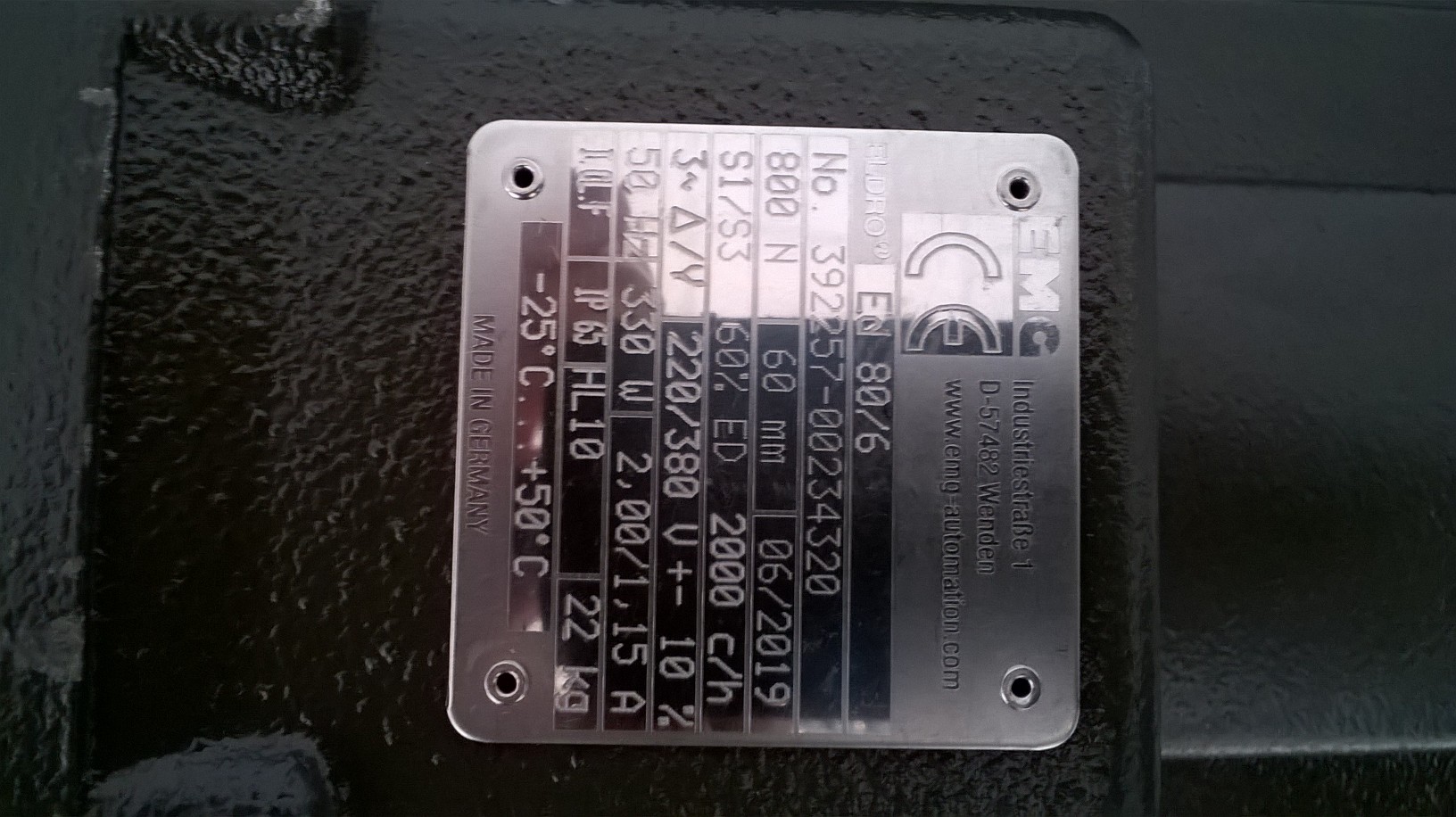 Zwalniak elektrohydrauliczny firmy EMG ELDRO ED 80/6 N - 800 skok 60mm produkcja 06/2019r zasilanie 3 - faz 220/380V 330W IP65 - stan NOWY ilość 2 szt. Cena netto - 3050.00 zł Faktura VAT