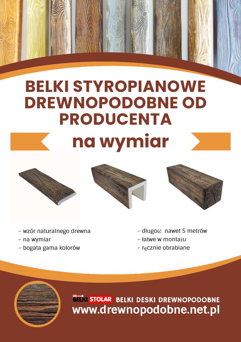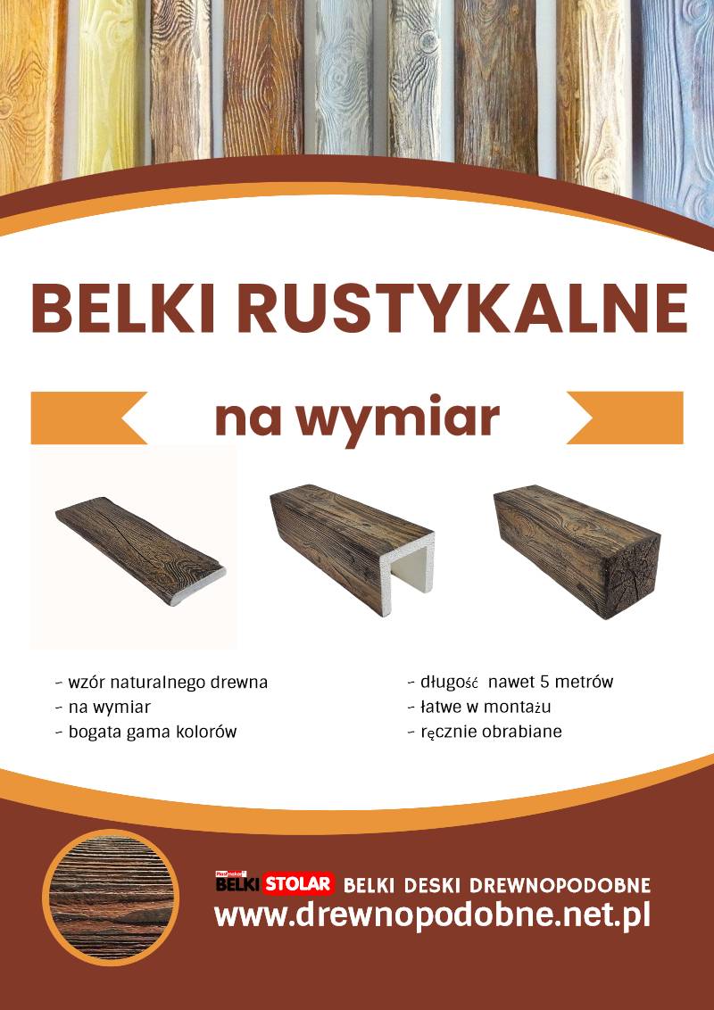 - Belki rustykalne: Wykonane z rdzenia styropianowego pokrytego przestrzenną strukturą drewna.