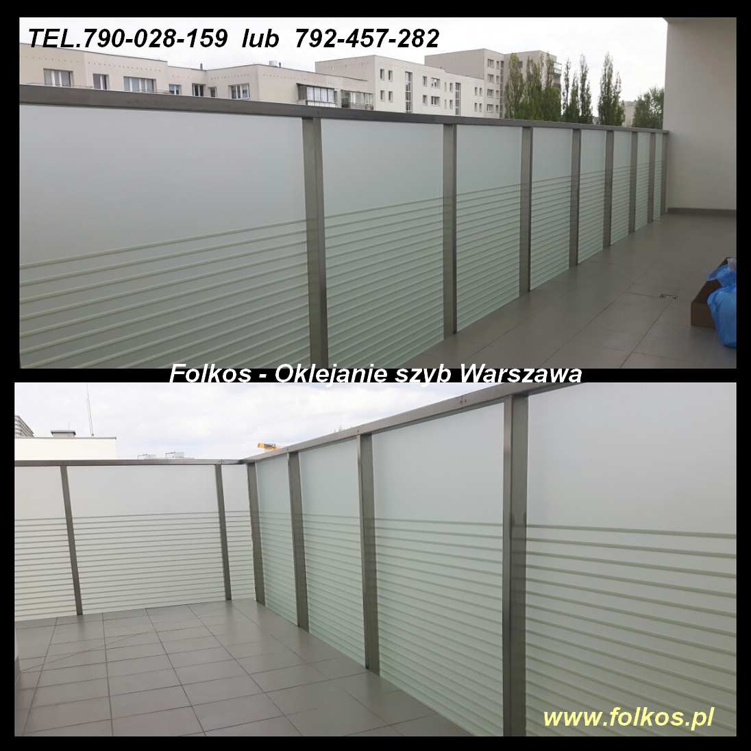 Folie matowe zewnętrzne Folkos folie na szklane szyby balkonowe - oklejanie balkonów Warszawa i okolice