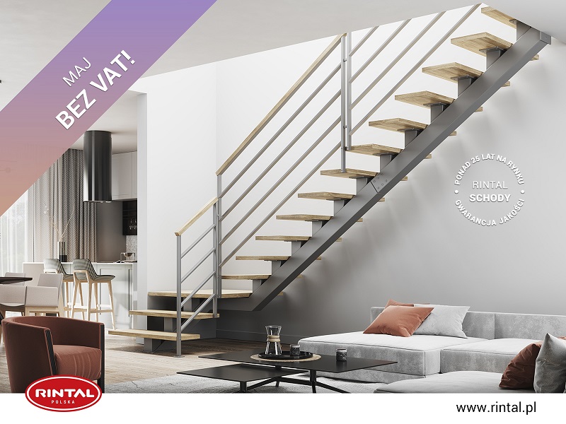 Wiosna na zewnątrz, a wewnątrz nowe schody! Prawda, że doskonały pomysł? Maj to dobry czas, aby zaplanować wiosenne zmiany i przygotować się na nadchodzący sezon. Rintal Polska, wiodący producent SCHODÓW do wnętrz organizuje PROMOCJĘ: MAJ BEZ VAT w formie zniżki w wysokości 8% na zakup schodów wraz z poręczą i montażem. Skorzystaj z bezpłatnego pomiaru, projektu oraz otrzymaj wizualizację schodów w swoim wnętrzu gratis!