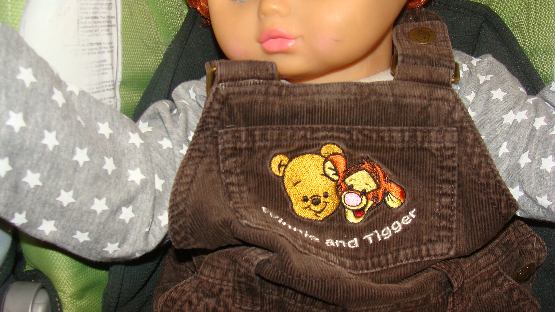 Spodnie ogrodniczki z aplikacją Kubusia Puchatka