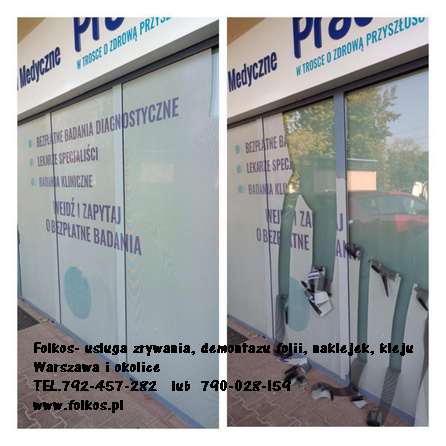 Usuwanie folii okiennych , folii reklamowych, naklejek, oznaczeń z folii - demontaż, usuwanie kleju, mycie szyb, witryn..... Warszawa i okolice
