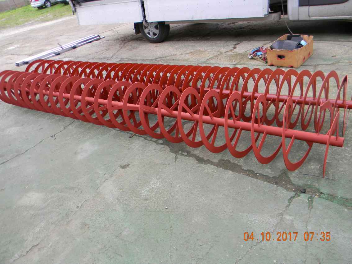 Wykonujemy ślimaki o różnym skoku, średnicy oraz grubości pióra od 1-25 mm. Spirale prawo lub lewoskrętne, mieszane, o zmiennym skoku, podwójne, stożkowe, na słupkach ( ażurowe) do transportowania różnych materiałów jak: węgiel ekogroszek, miał węglowy, żwir mokry i suchy, trociny, zrębki, pasze, zboże, mąka, cement i innych materiałów. Różne systemy łączenia poszczególnych segmentów, czterokąt, sześciokąt, połączenie sworzniowe, wg życzenia.